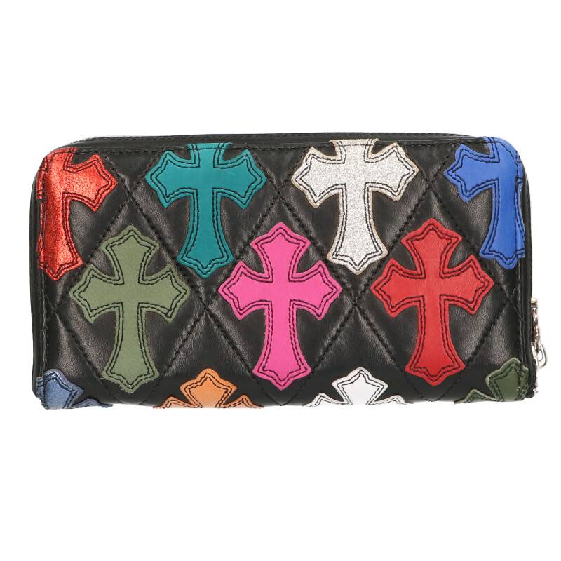 クロムハーツ/Chrome Hearts 【REC F ZIP/QUILTED】マルチカラークロスパッチキルティングレザー財布(ブラック×ブルー×レッド)【SS07】【小物】【804012】【中古】bb134#rinkan*S