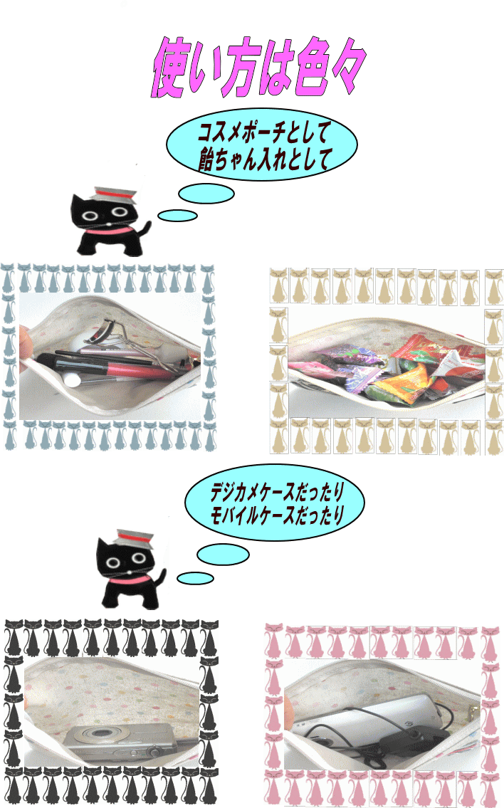 日本製 手作りポーチ 帽子猫 マルチケース 通帳 母子手帳 ファスナー フラット マチなし ビニールコーティング ラミネート 猫グッズ 猫 雑貨 プレゼント 猫好き 誕生日 女性 モチーフ 人気 お勧め 安い 【送料無料市場】