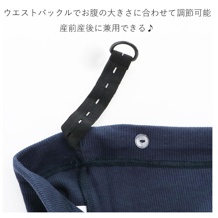 ・ウエストバックルでお腹の大きさに合わせて調節可能。